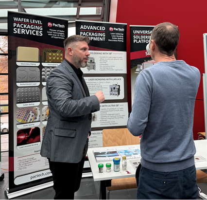 Parallel zu den Vorträgen präsentierte eine kompakte Fachausstellung aktuelle Entwicklungen aus Industrie und Forschung. Zu den Ausstellern zählten Indium Corporation, budatec GmbH, UniTemp GmbH, EKRA GmbH, Pac Tech – Packaging Technologies GmbH, Bond-IQ GmbH, nanotec international GmbH, Christian Koenen GmbH und Hahn-Schickard-Gesellschaft für angewandte Forschung e. V. Die Ausstellung bot über beide Tage hinweg reichlich Gelegenheit zu vertieftem Austausch – von spontanen Fachdiskussionen bis zu handfesten Projektideen.